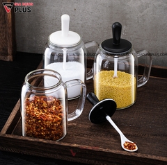 Lọ Đựng Gia Vị Thìa Liền Nắp Có Tay Cầm Thuỷ Tinh Borosilicate | Mẫu Mới 2021 | KUAKE