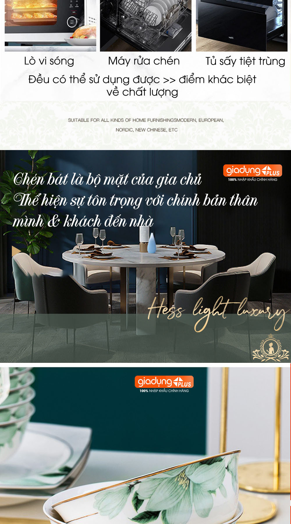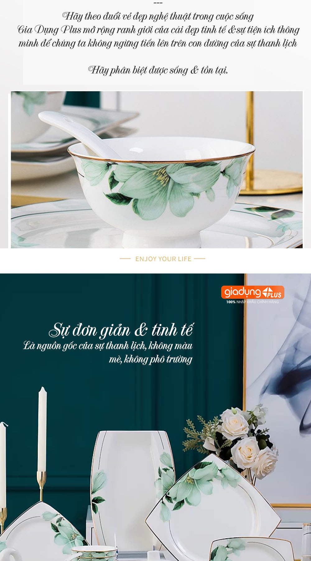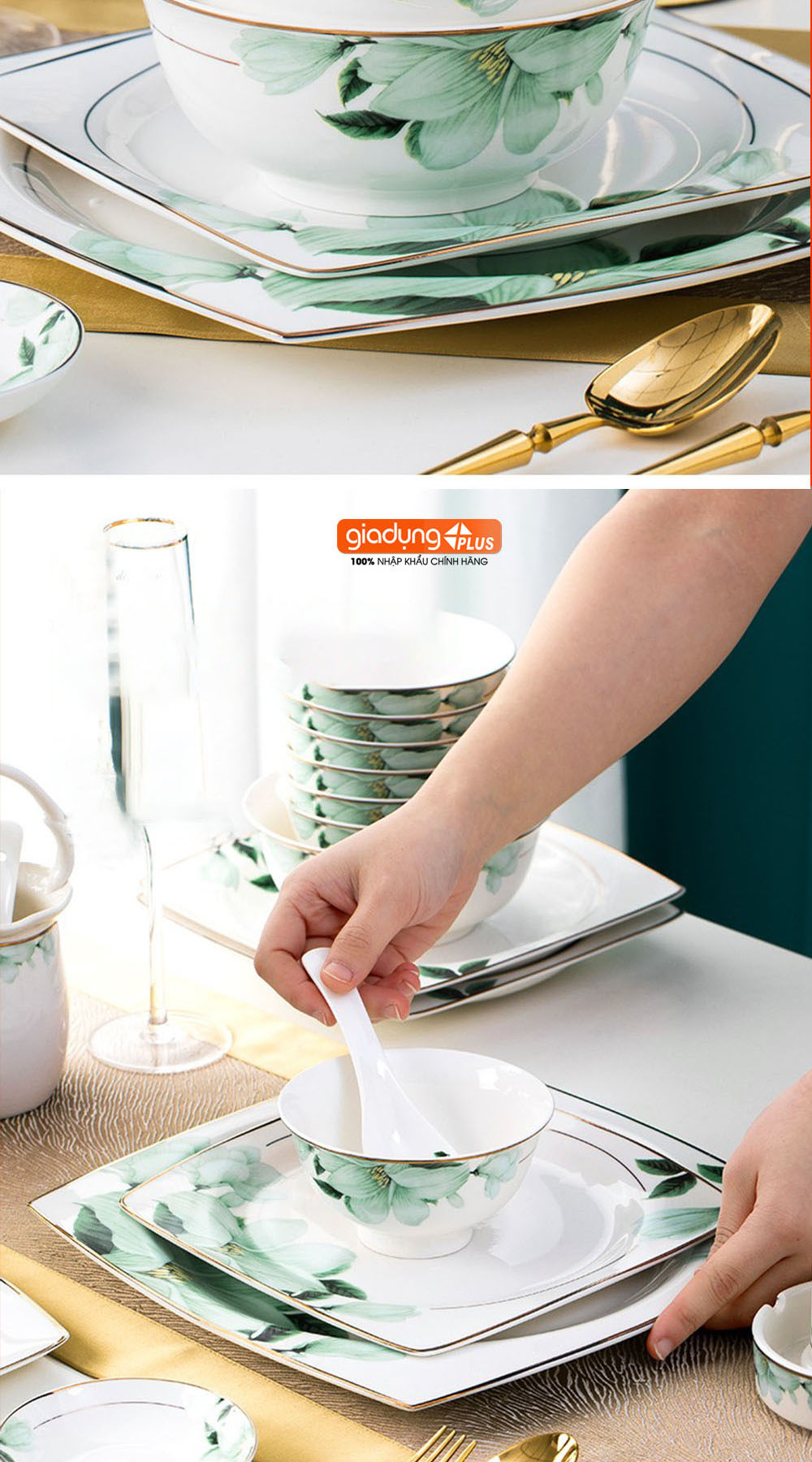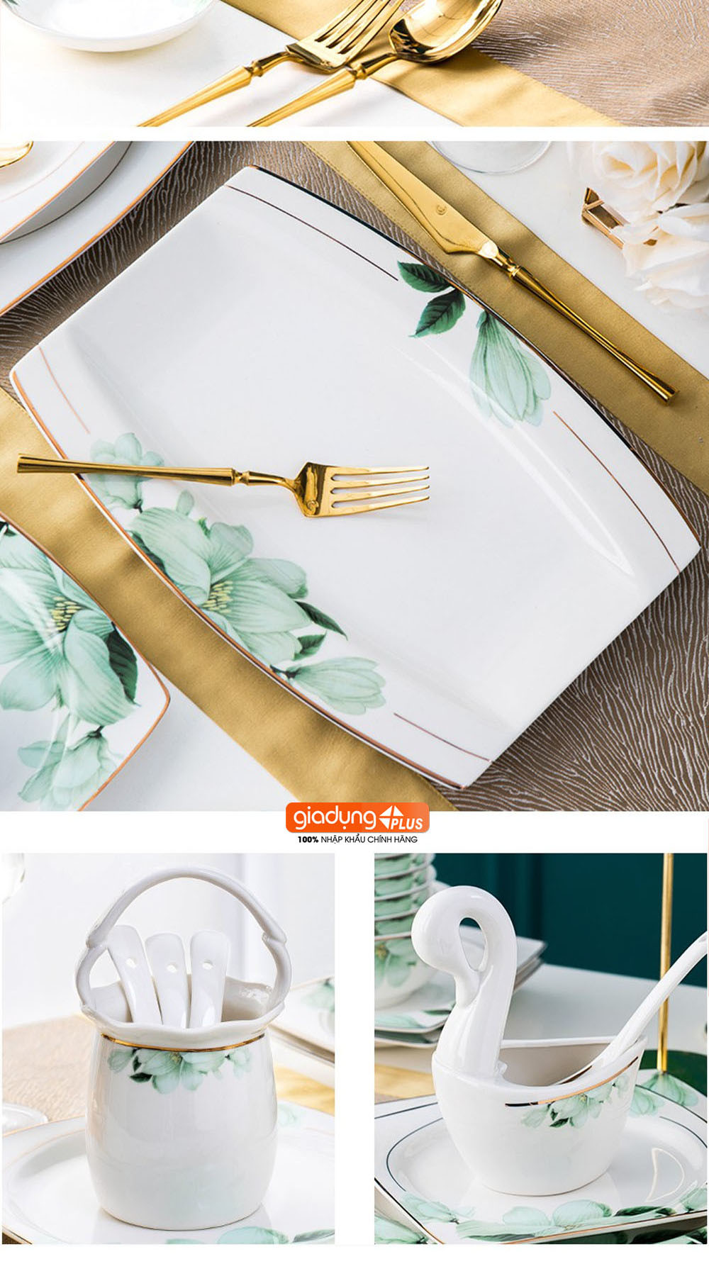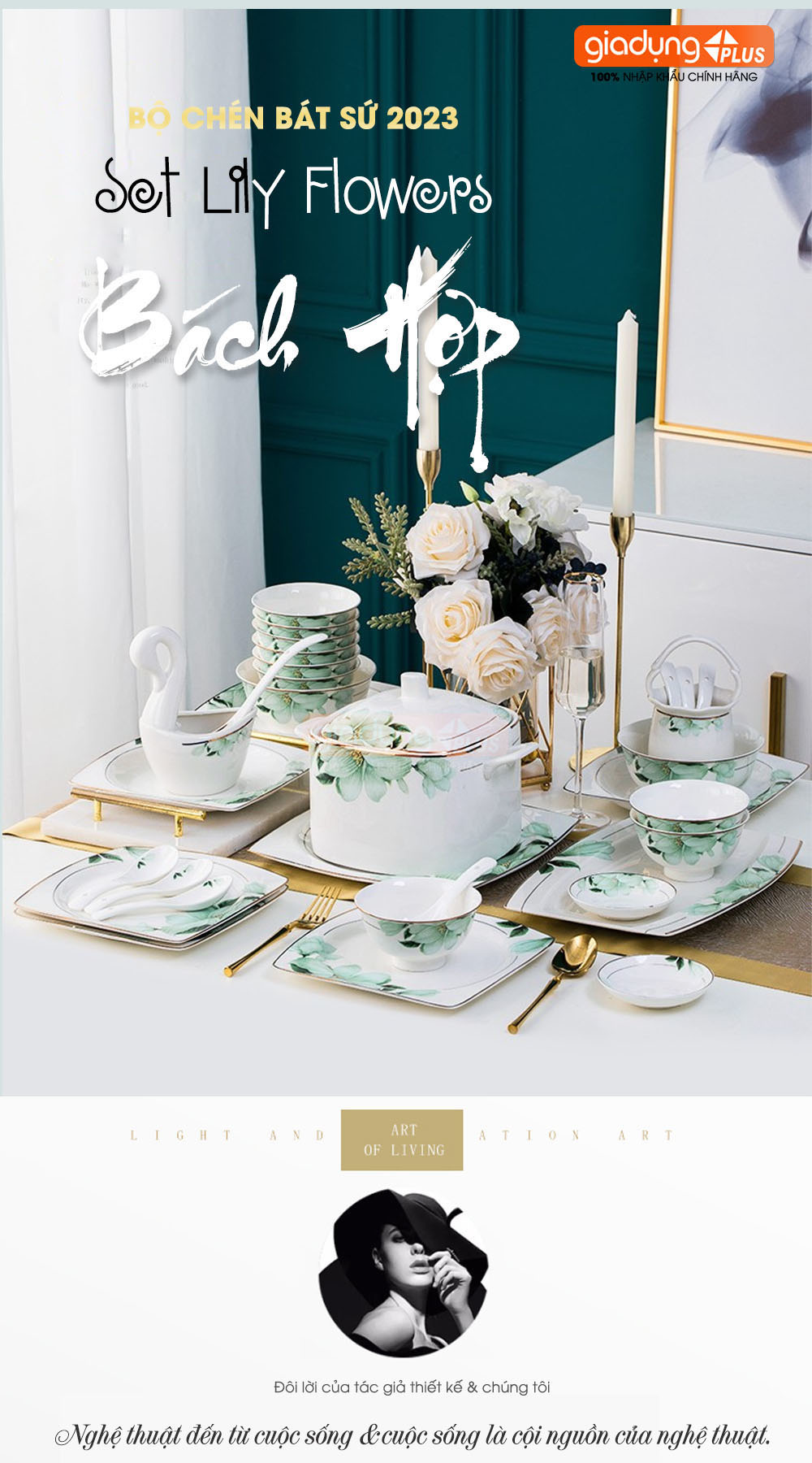 • Bộ chén ăn sứ cao cấp cho 10 người ăn vô cùng sang trọng, tinh tế với cảm hứng thiết kế là hoa Bách Hợp (Lily Flowers).