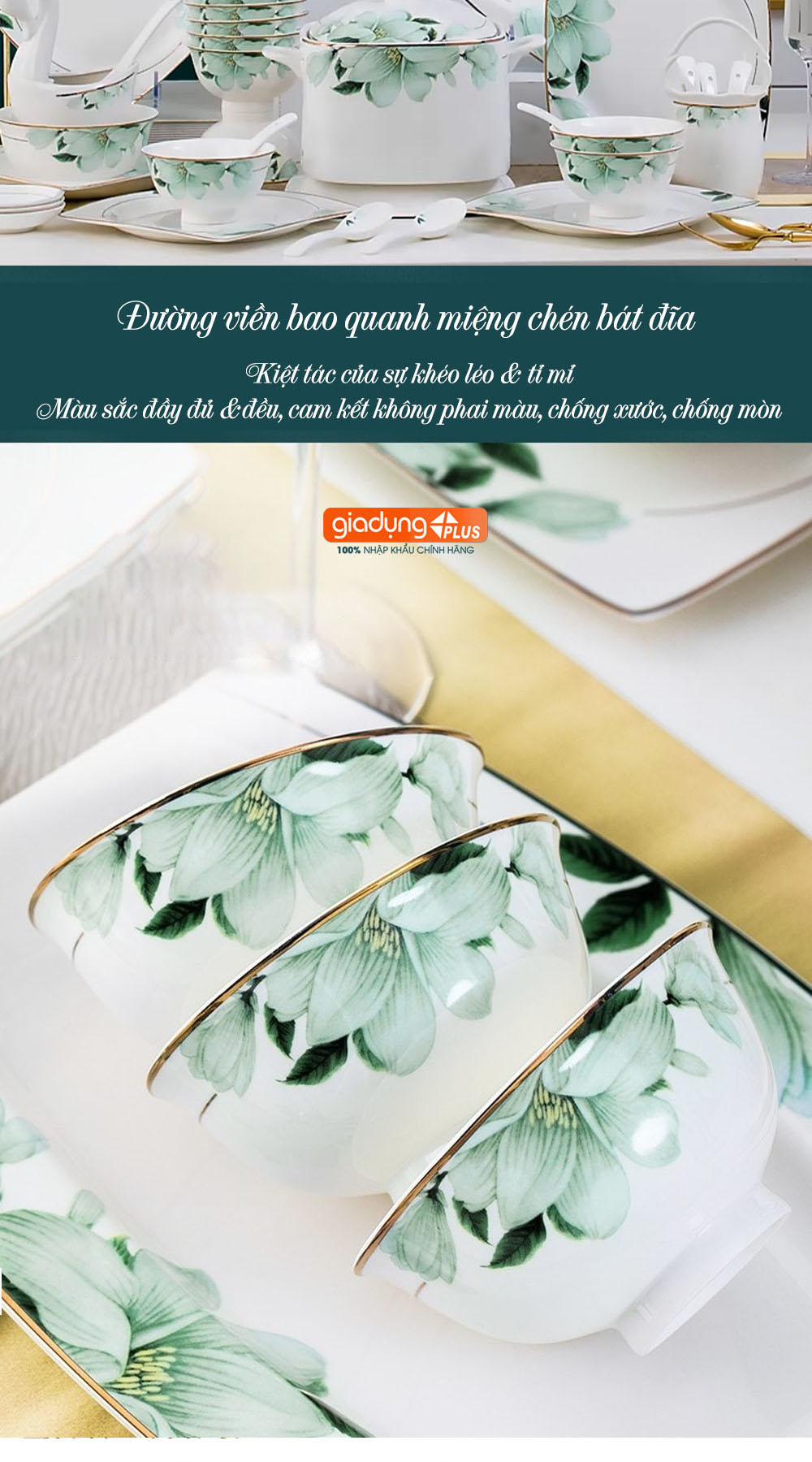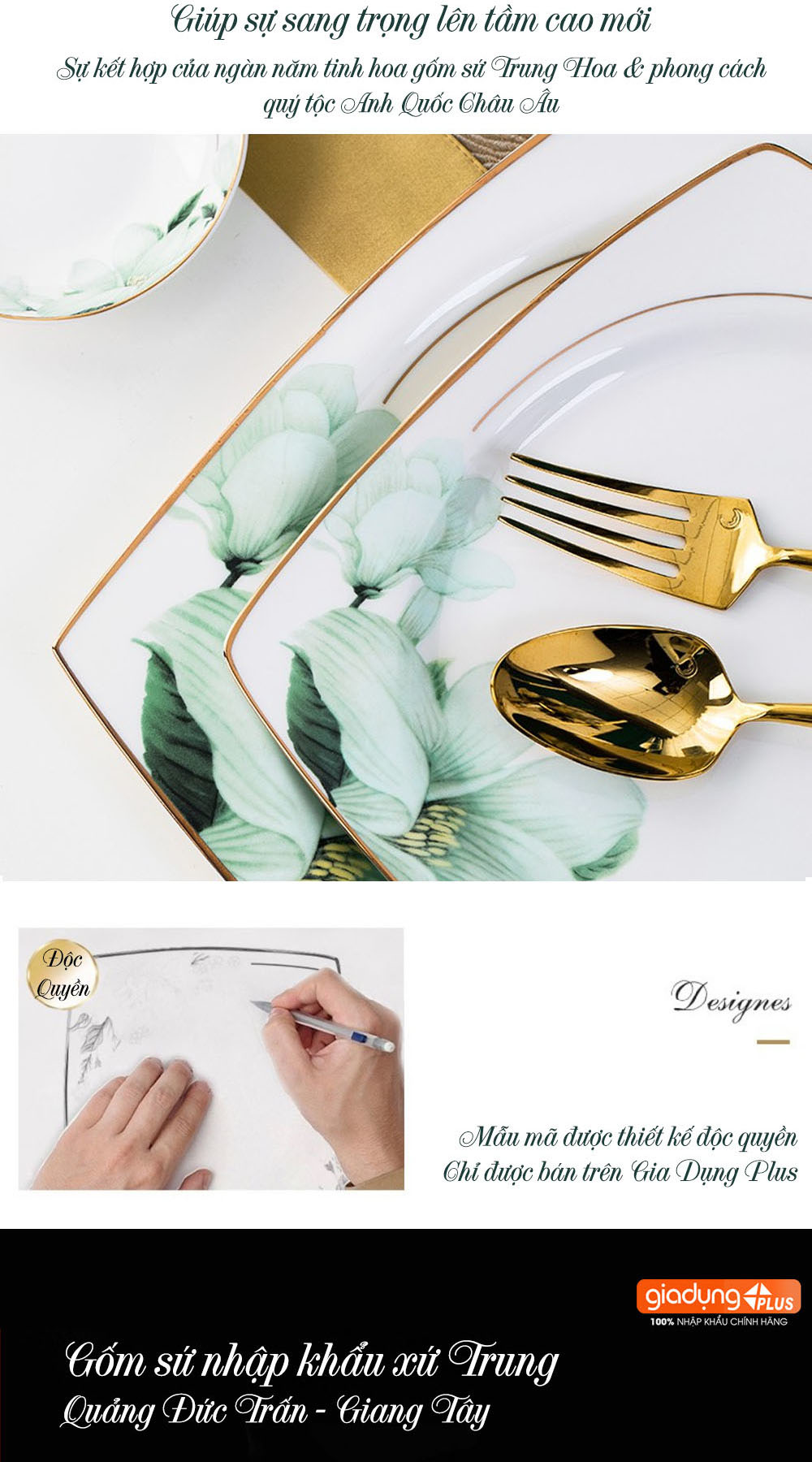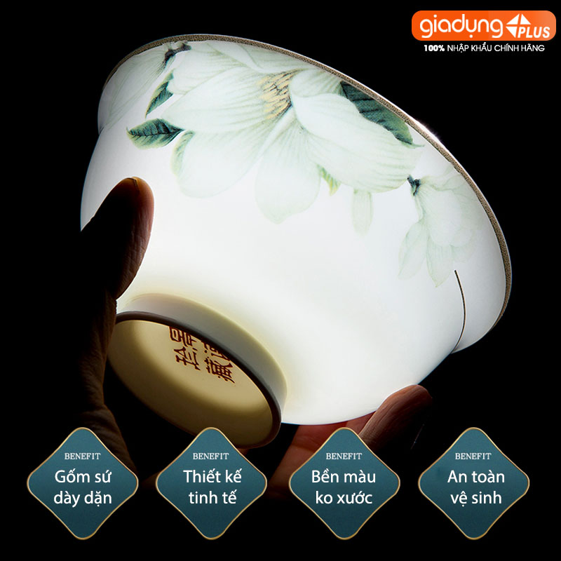 • Set chén được nhập khẩu chính hãng từ Trấn Đức Cảnh - thương hiệu gốm sứ nổi tiếng Trung Hoa hàng ngàn năm qua.