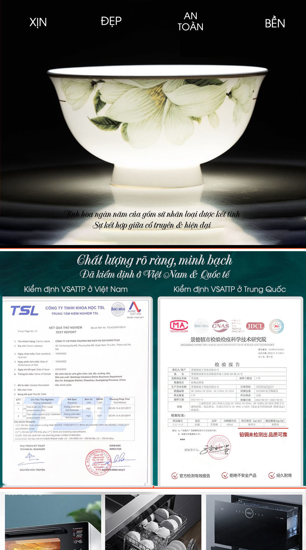 • Chất sứ dày dặn, men sứ nano giúp chống xước & bay màu, dễ vệ sinh mà không sợ bị bám bẩn