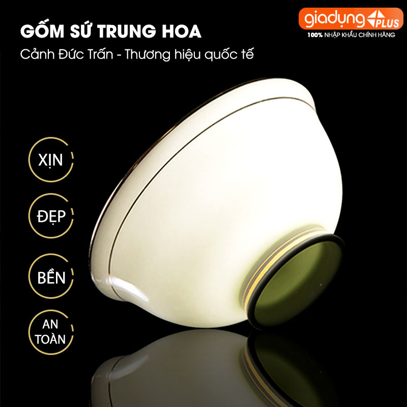 • Set chén được nhập khẩu chính hãng từ Trấn Đức Cảnh - thương hiệu gốm sứ nổi tiếng Trung Hoa hàng ngàn năm qua.