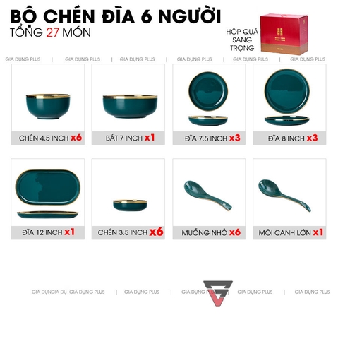 Thông tin về bộ chén bát sứ xanh lục bảo cao cấp PHALEDO (PL-0636)
