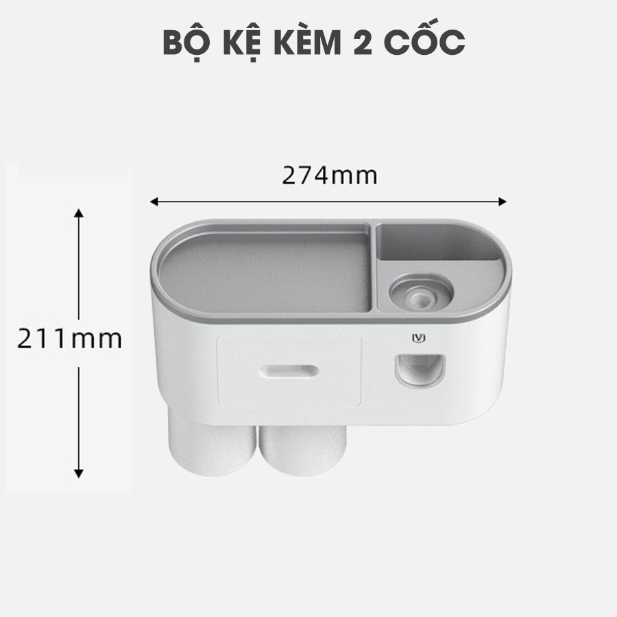 Bộ kệ nhả kem đánh răng tự động kèm cốc dán tường của ECOCO là bộ sản phẩm đa năng gồm các thành phần tích hợp sau: