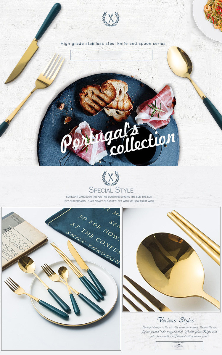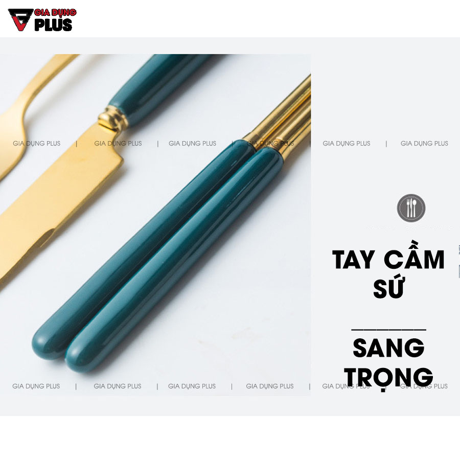 Kết hợp với bộ đồ ăn bằng sứ màu xanh ngọc lục bảo sẽ tạo thành một bộ tác phẩm nghệ thuật ngay trong khu bếp của nhà bạn | Đũa dao nĩa thìa muỗng inox 304, tay cầm sứ cao cấp Qianhuiju