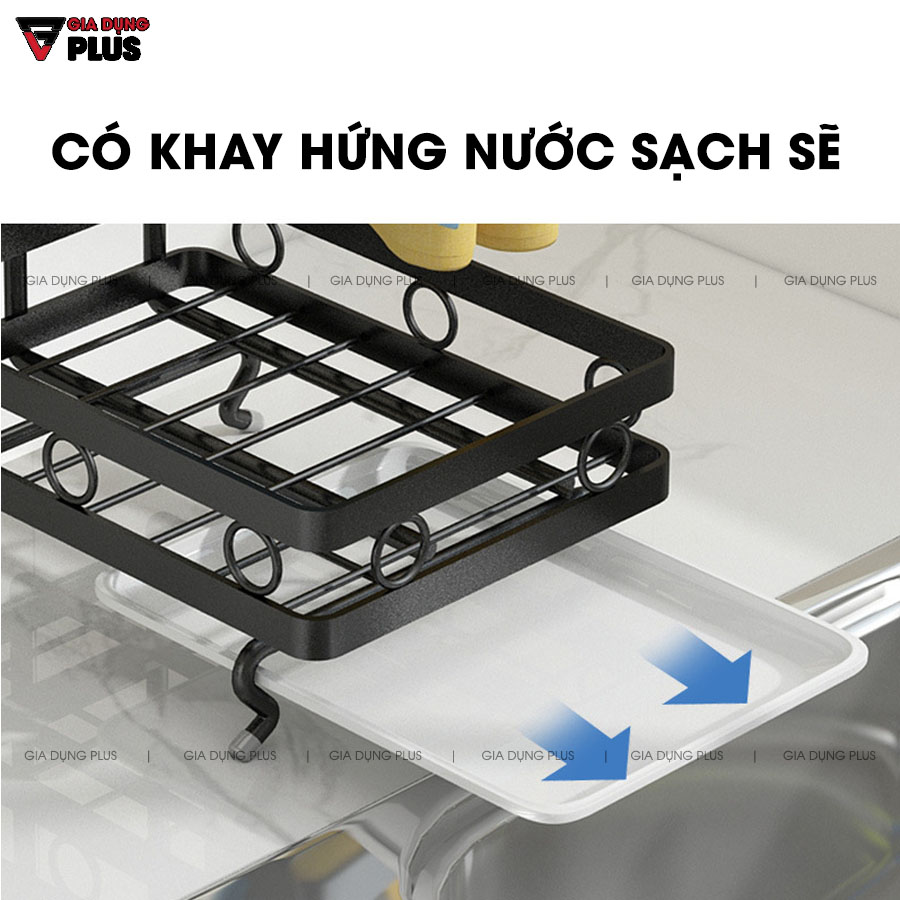 Khay hứng nước bằng nhựa PP, đảm bảo bếp luôn khô thoáng và sạch sẽ | Giỏ đựng bọt biển kèm thanh treo khăn lau bếp đa năng thép carbon Nanjie