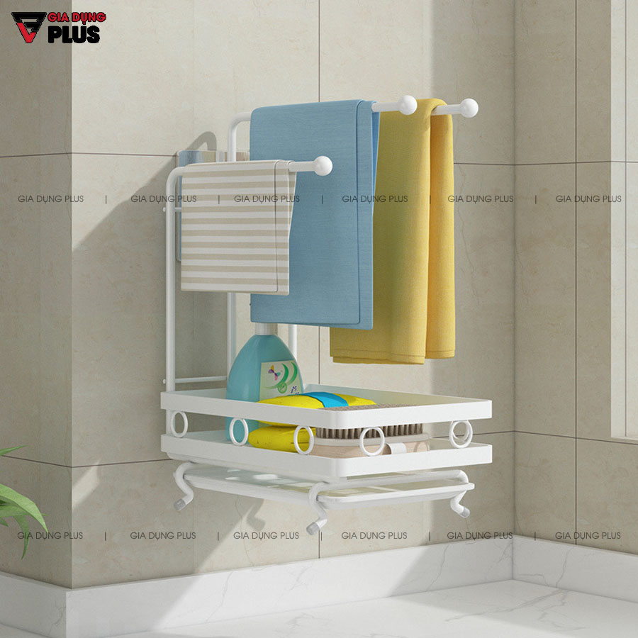 Thiết kế kèm 3 thanh treo khăn gọn gàng, giúp khăn bếp khô thoáng nhanh hơn | Giỏ đựng bọt biển kèm thanh treo khăn lau bếp đa năng thép carbon Nanjie