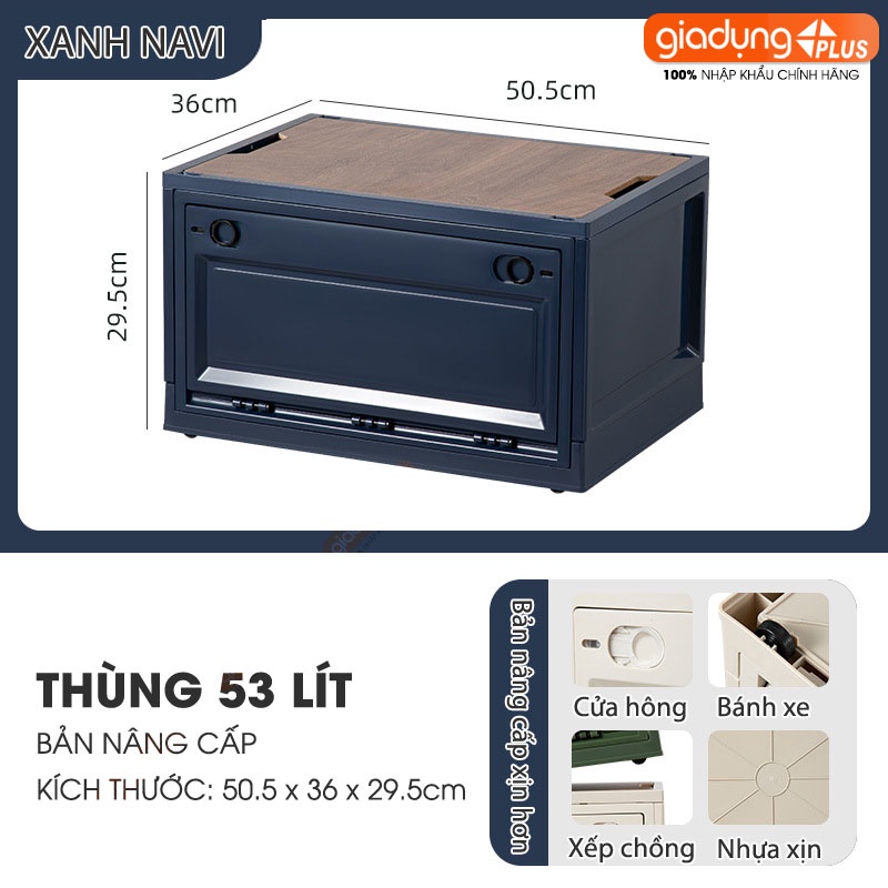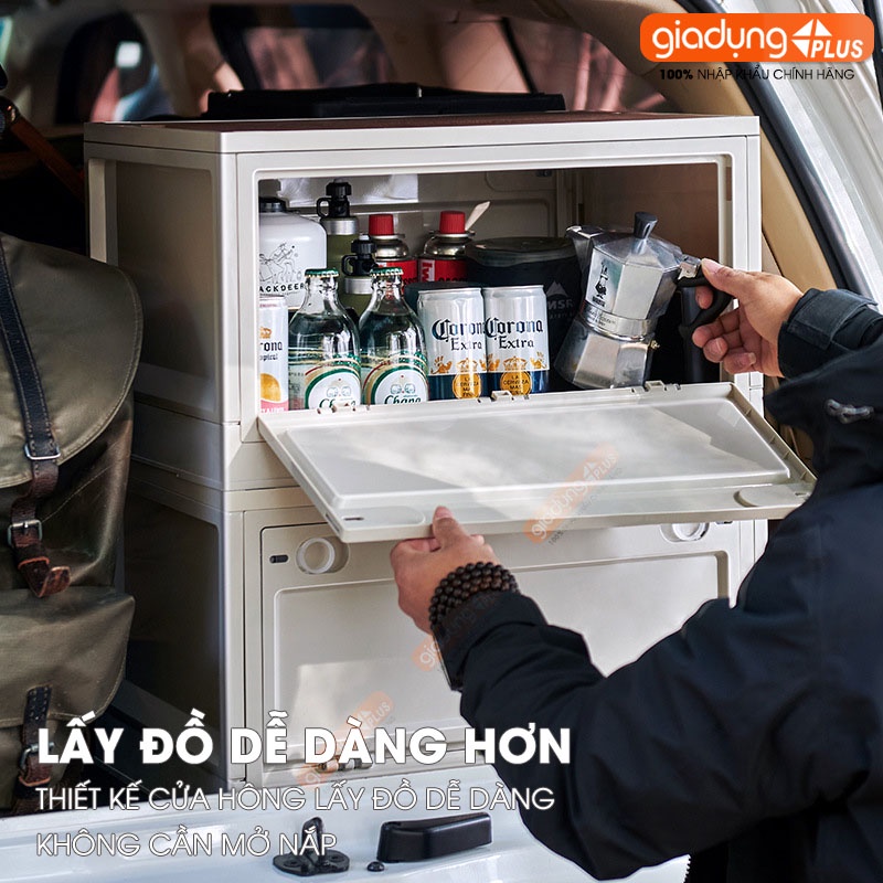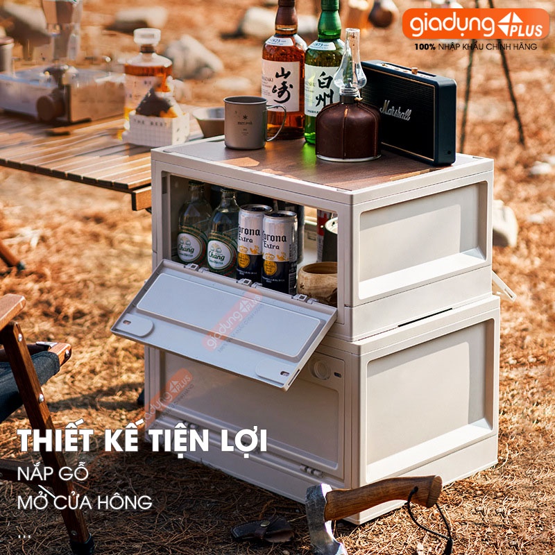 Thùng đựng đồ gấp gọn nắp gỗ MDF LZ-0527 là một dòng hộp nhựa cao cấp chuyên chứa đồ đi camping, du lịch xa nhà, cất gọn trong cốp xe.