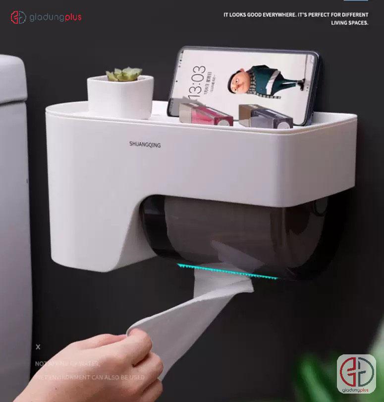 Hộp đựng giấy vệ sinh cuộn lớn ShuangQuing dược dán tường chắc chắn