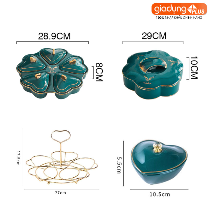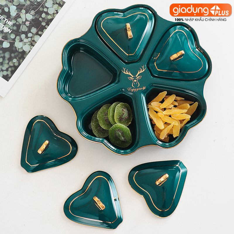 Ngoài ra, Gia Dụng Plus còn có loại đựng mứt sứ hình trái tim 5 cánh rất dễ thương cũng cùng màu sắc xanh ngọc lục bảo