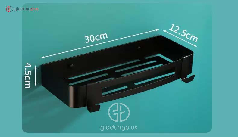 Với kích thước của kệ là 30cm x 12.5cm x 4.5cm (dài x rộng x cao) thì vừa cho thiết kế nhỏ gọn để tiết kiệm không gian, không gây vướng víu khi sử dụng vừa cho khoảng không gian chứa đồ lớn, giúp đựng được nhiều đồ dùng trong phòng tắm.