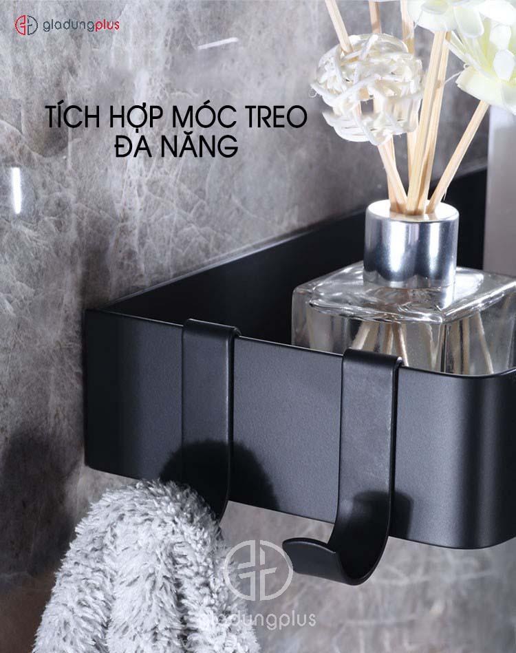 Kệ dán tường phòng tắm inox 304 có tích hợp các móc treo đa năng để móc đồ đa năng, có 2 móc treo cho mỗi kệ và chúng cũng được làm từ inox 304 luôn.