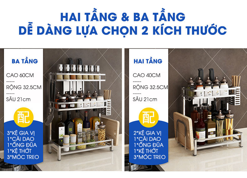 Gồm nhiều phụ kiện đi kèm giúp đựng đồ đa năng - hơn cả một cái kệ gia vị