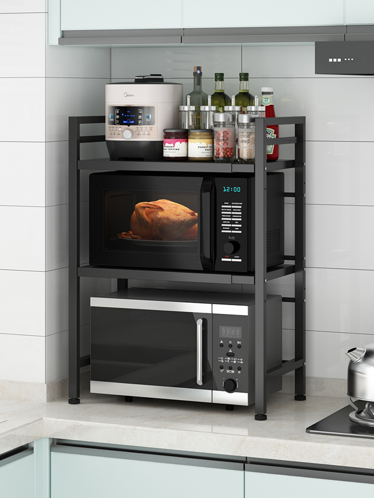 Thiết kế sang trọng và bắt mắt với màu đen cuốn hút, giúp bếp nhà bạn trở nên đẳng cấp hơn và gọn gàng hơn trông thấy | Kệ để lò vi sóng, lò nướng hai tầng co giãn thông minh chân đứng Tiggang
