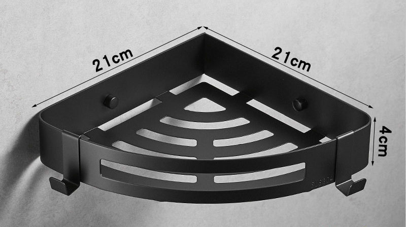 Kệ góc dính tường thép không gỉ của Afase có thiết kế thông minh và tiện ích cho người sử dụng. Có 2 móc treo 2 bên dùng để treo các đồ dùng phòng tắm như bông tắm, bàn chải...