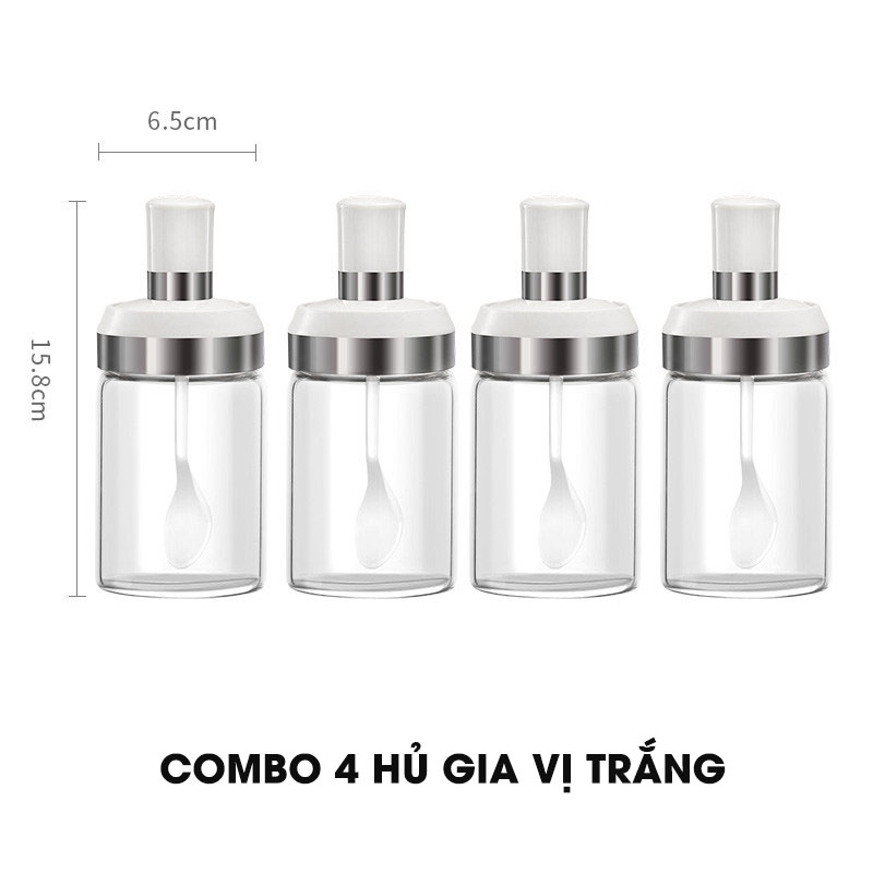 Lọ Đựng Gia Vị Muỗng Liền Nắp Màu Trắng Cao Cấp Zibo Có Đai Cao Su Chống Ẩm